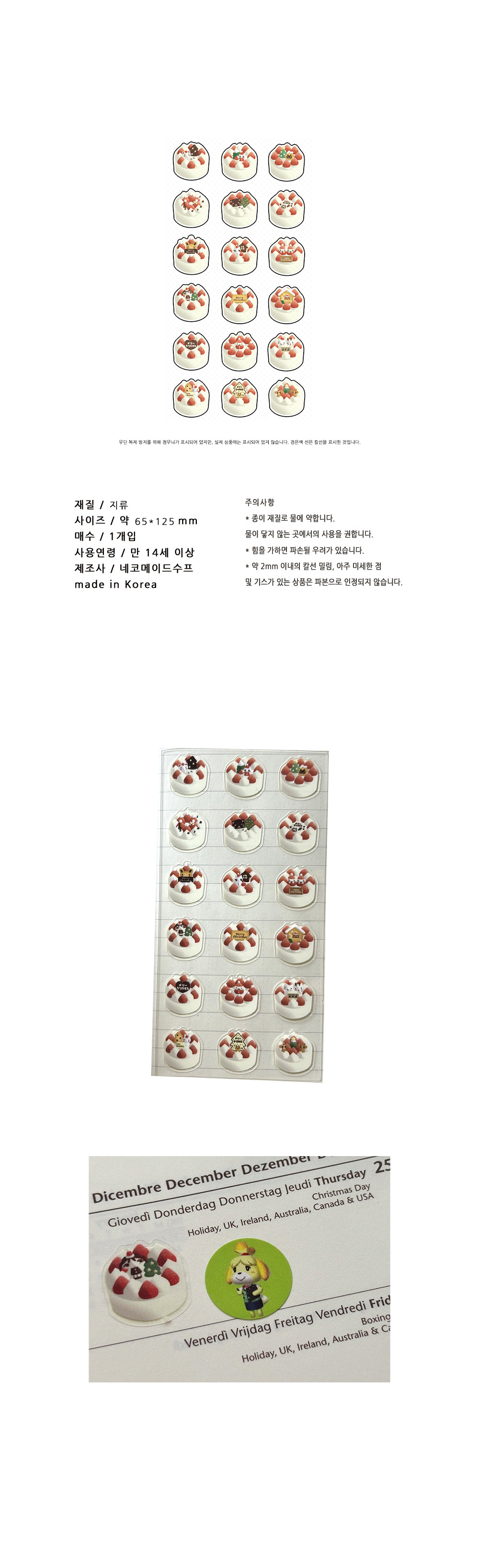 (스티커) 투명 크리스마스!데코딸기쇼트케이크